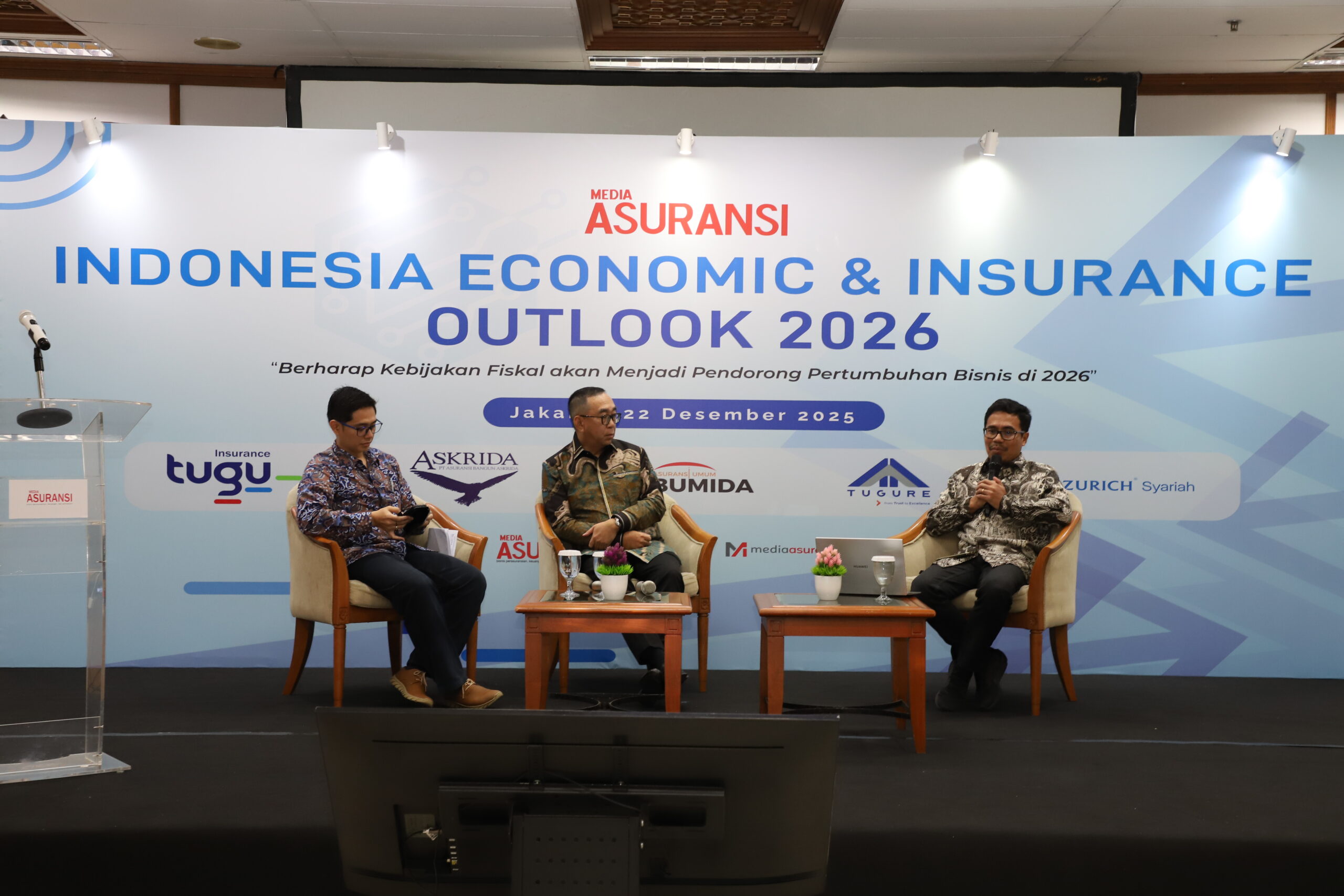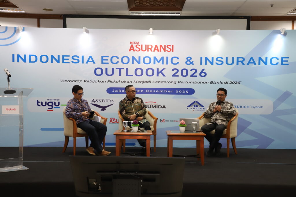 (Kanan): Plt. Direktur PT Media Asuransi Indonesia sedang memandu seminar Indonesia Economic & Insurance Outlook 2026. | Foto: Media Asuransi/Arief Wahyudi