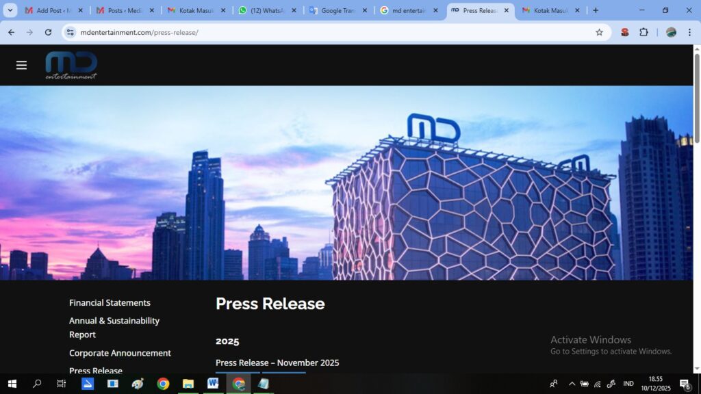 “Prospek usaha PT MD Entertainment Tbk ke depan dipengaruhi oleh kondisi makroekonomi yang relatif stabil, pertumbuhan PDB yang tetap positif, inflasi terkendali, serta kebijakan suku bunga yang berpengaruh pada biaya pendanaan,” ujar Corporate Secretary MD Entertainment Fadel Ramadhia.